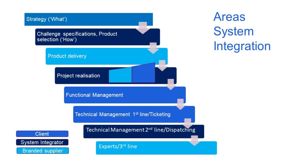 - the Supplier and the System Integrator need to have a clear agreement about communication lines: it might be tempting for vendors to communicate directly with the Client – often on the basis of informal contacts ‘just about this small detail’ – but that practice has a tendency to gradually grow a relationship off kelter.